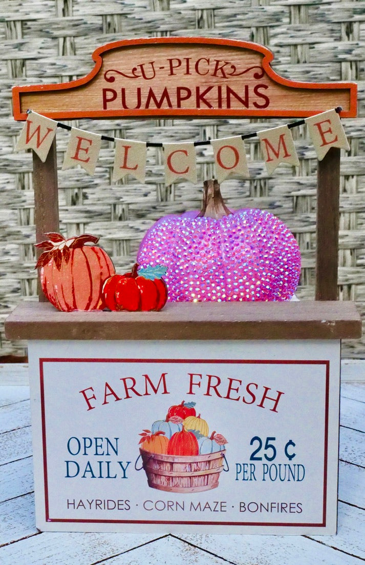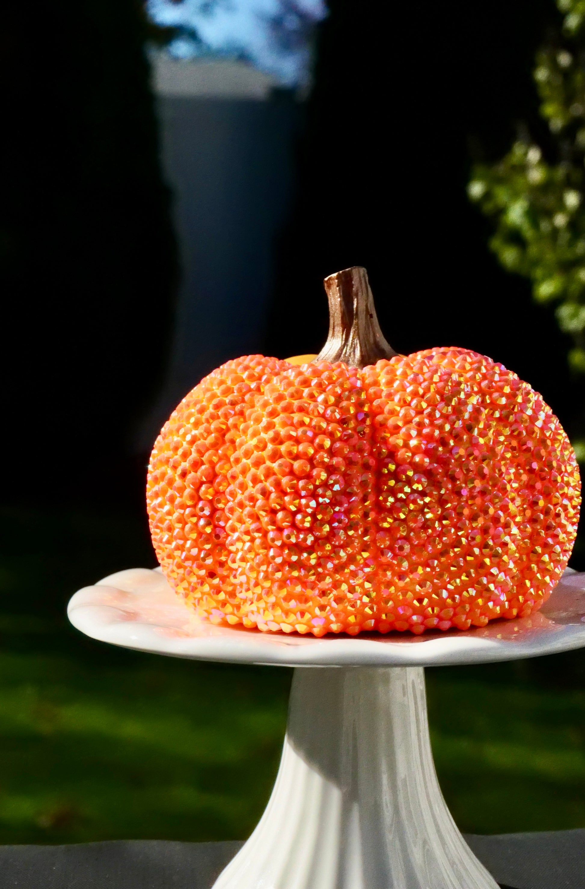 Add a pop of festive flair to your decor with this bright rhinestone pumpkin! 🎃