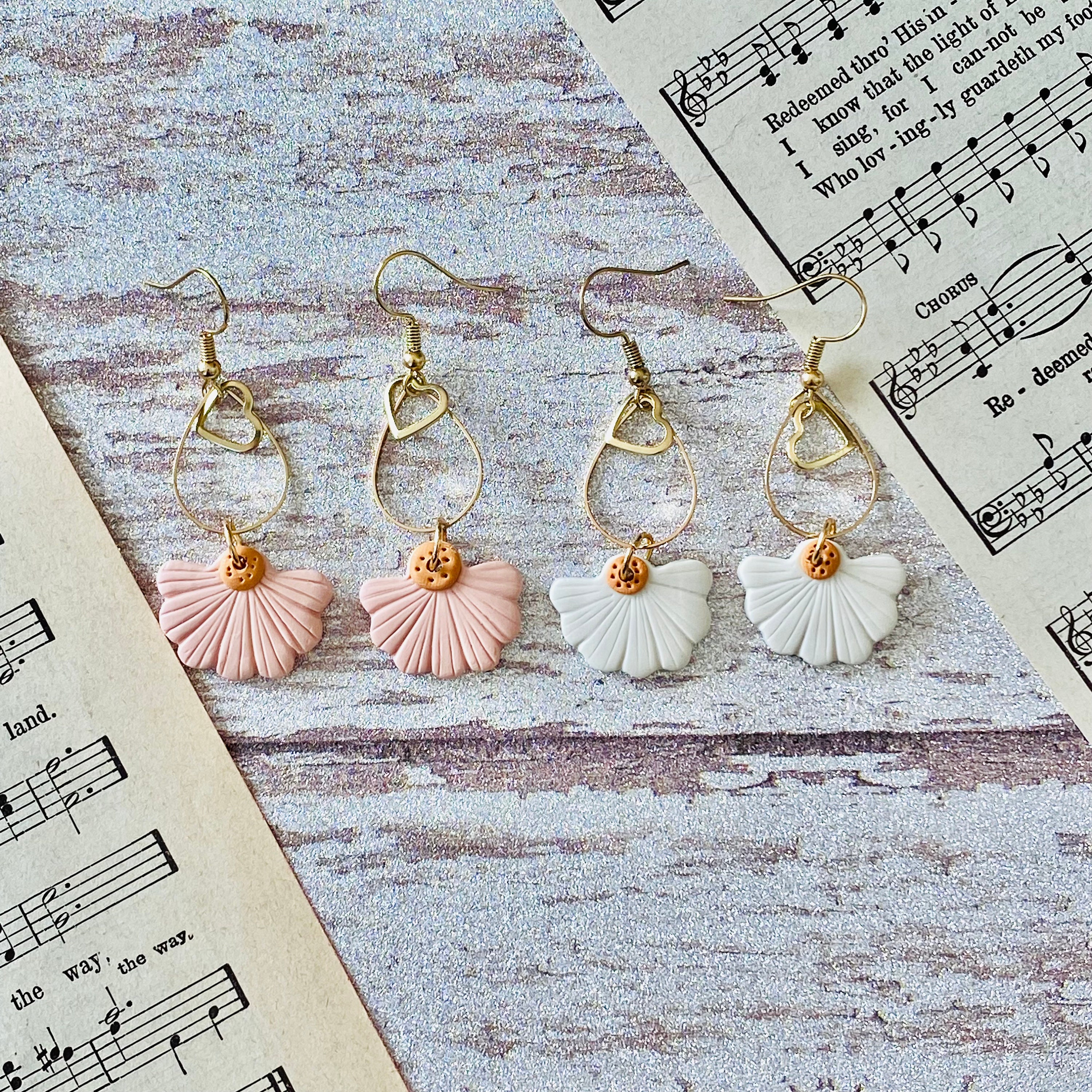 Half Daisy Drop Love Earrings | Pink & White Flower Dangle Jewelry | Cute Boho Statement Gift for Her | Handmade Accessory