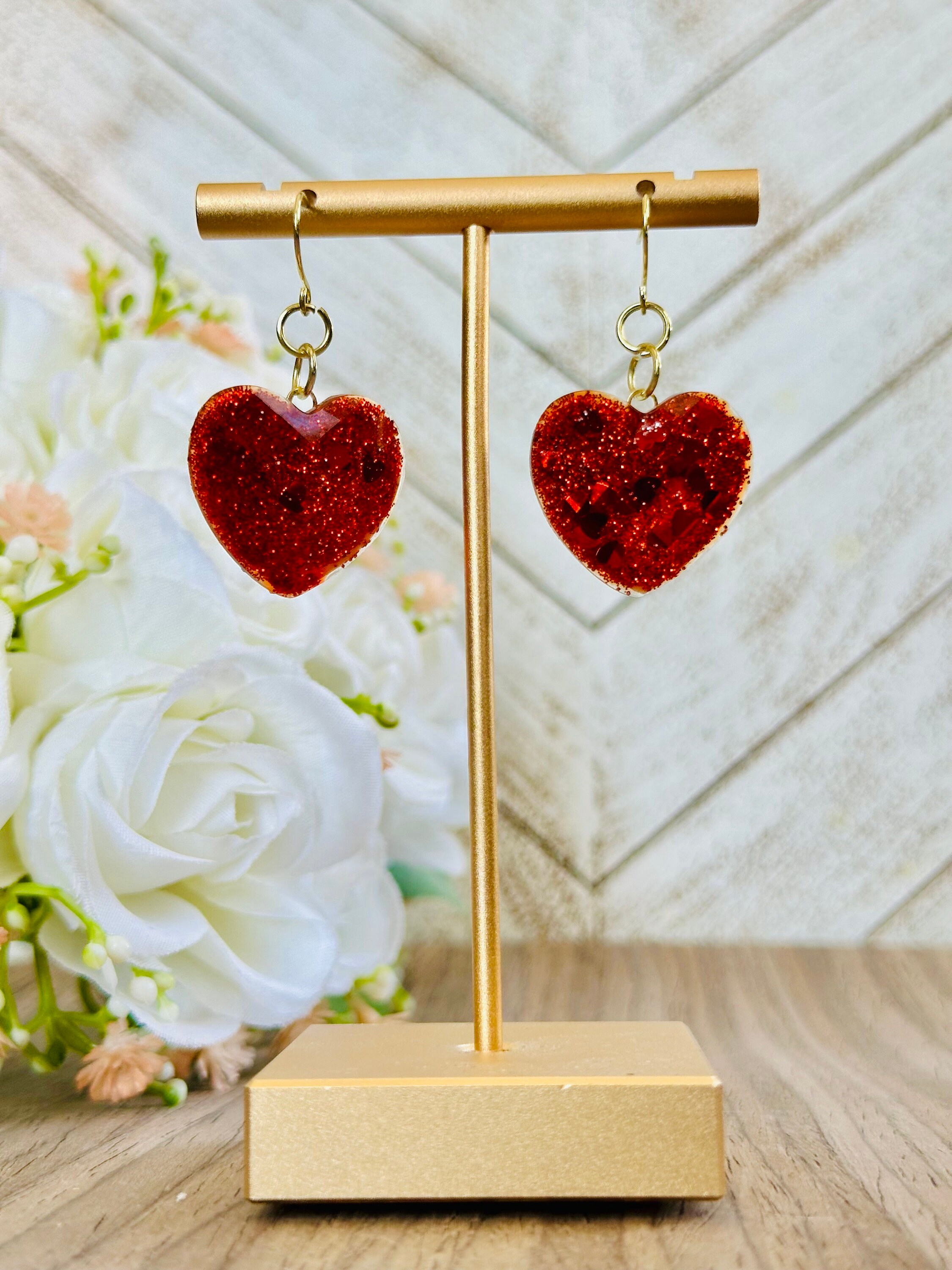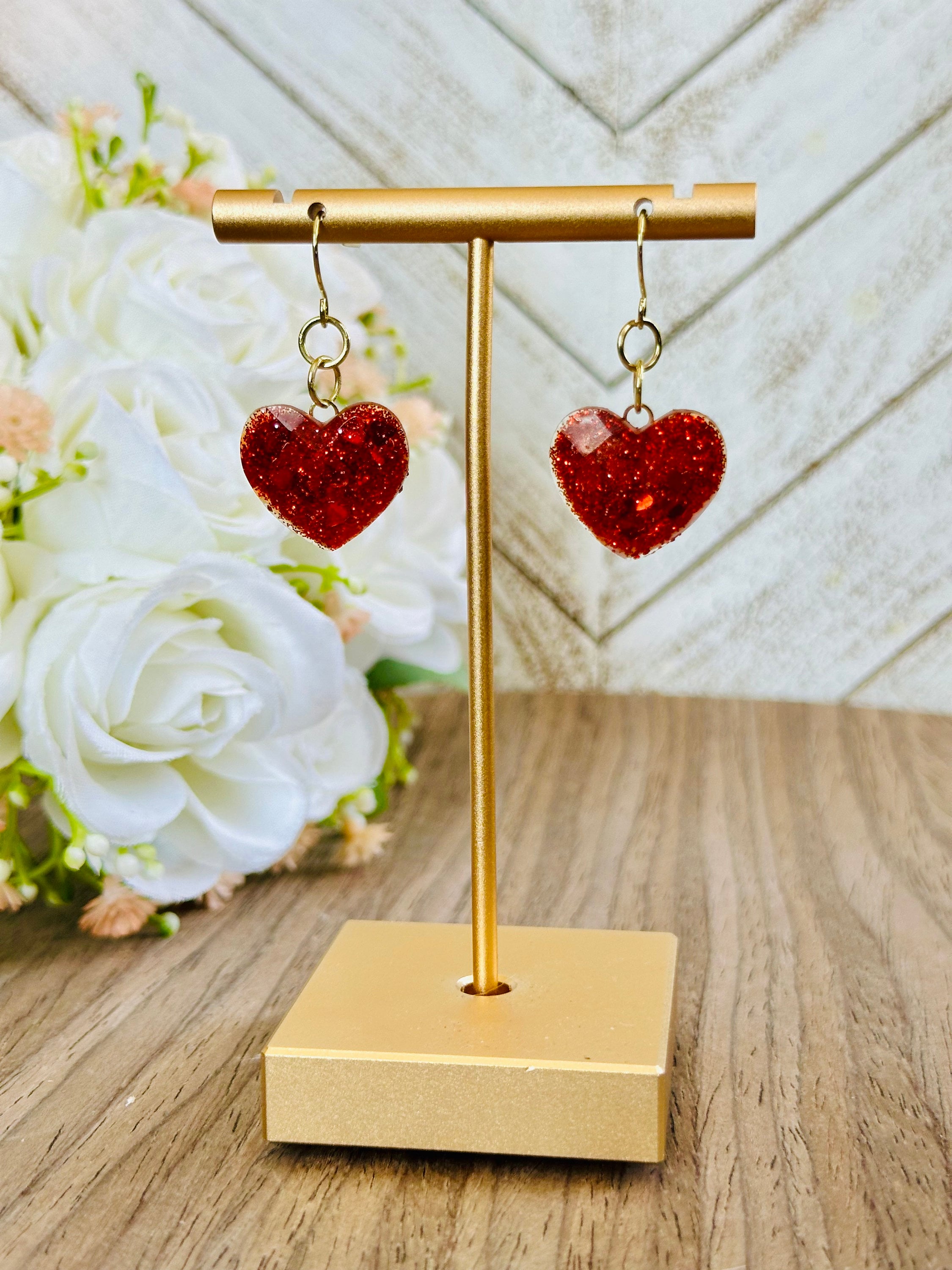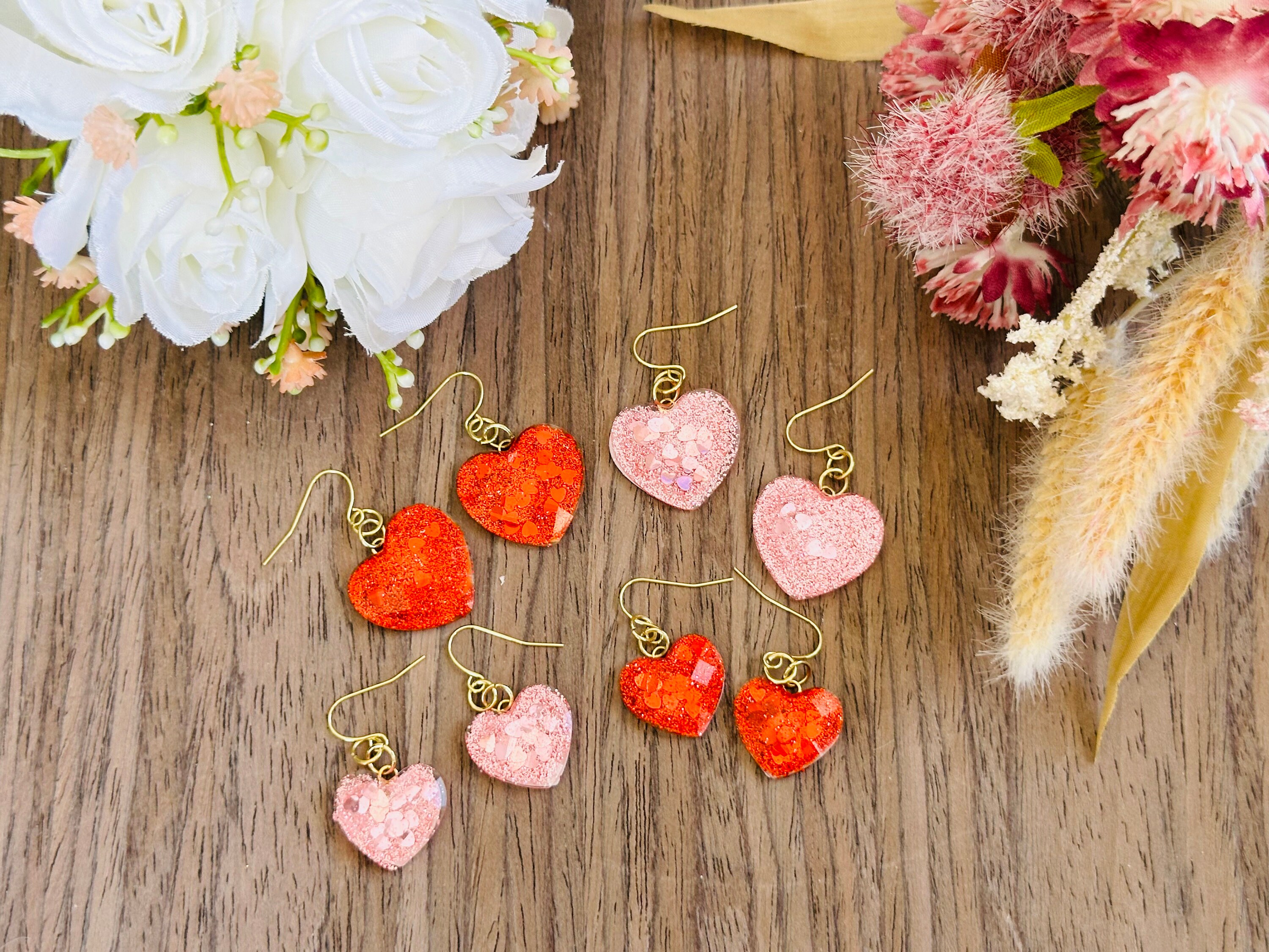 Glitter Heart Earrings | Red & Pink Resin Dangle Jewelry | Cute Statement Gift for Her | Valentine’s or Everyday Accessory