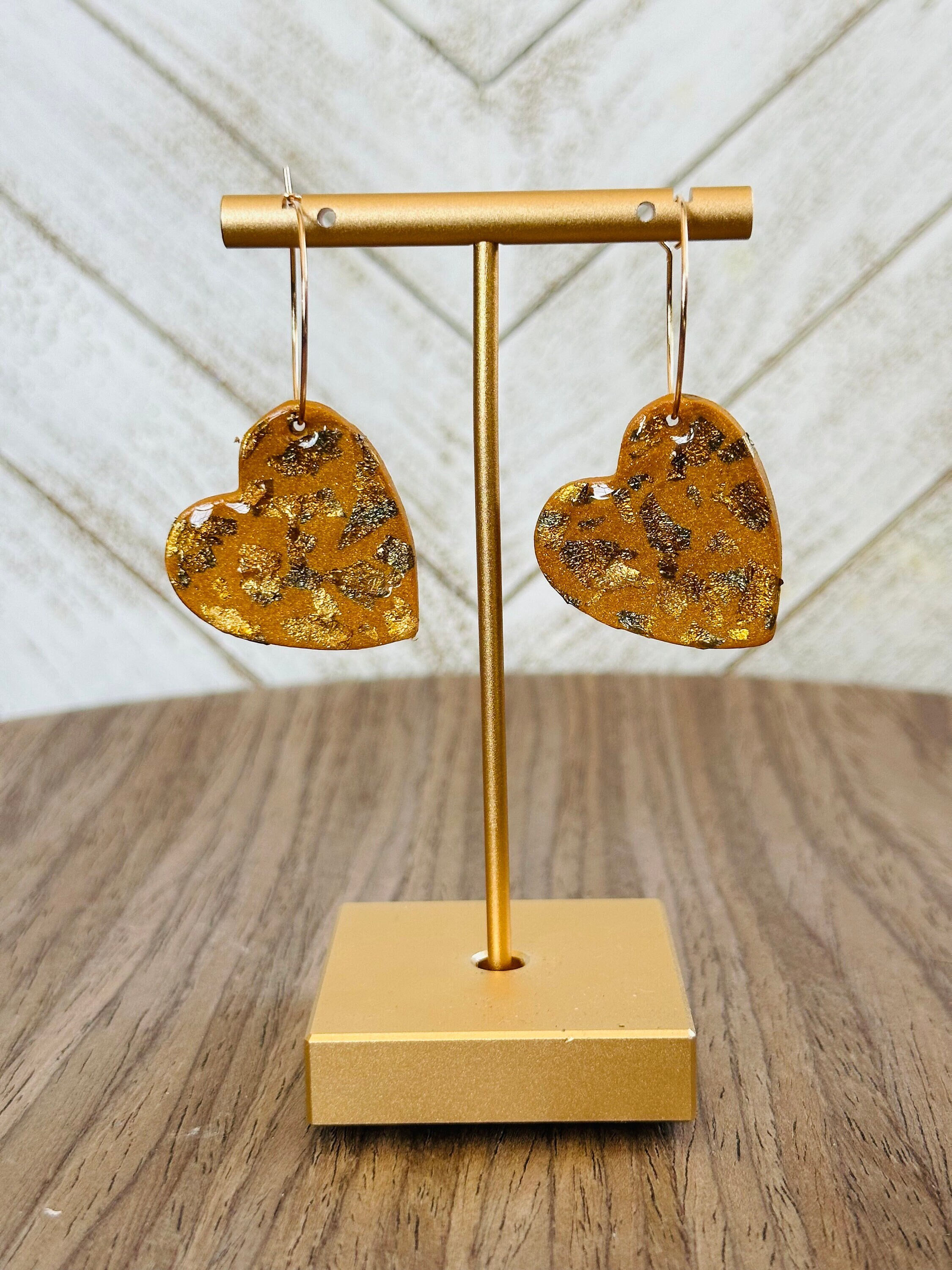 Golden Heart Hoop Earrings | 18K Gold Plated Dangle Jewelry | Cute Statement Gift for Her | Fun Everyday & Festival Accessory