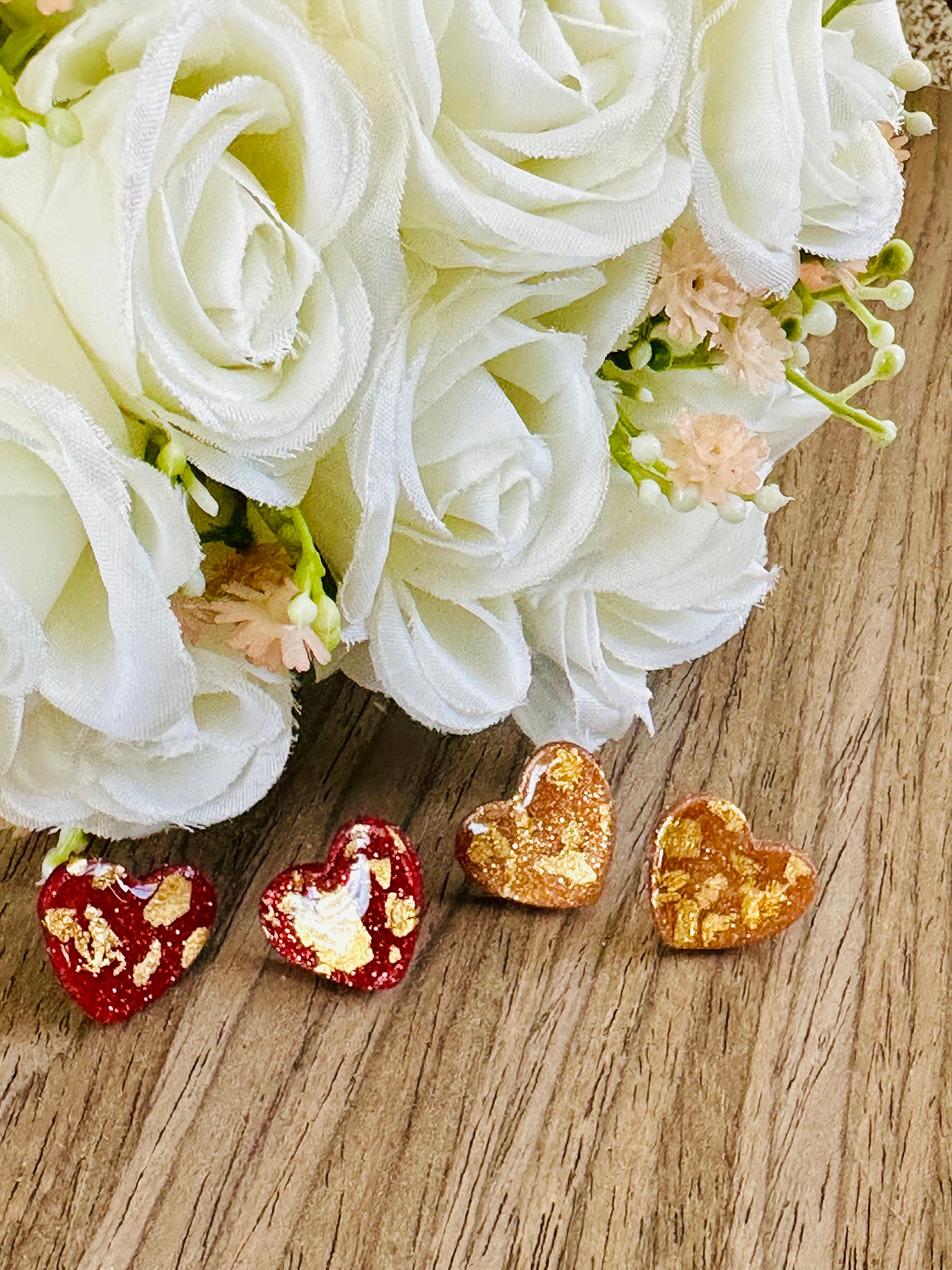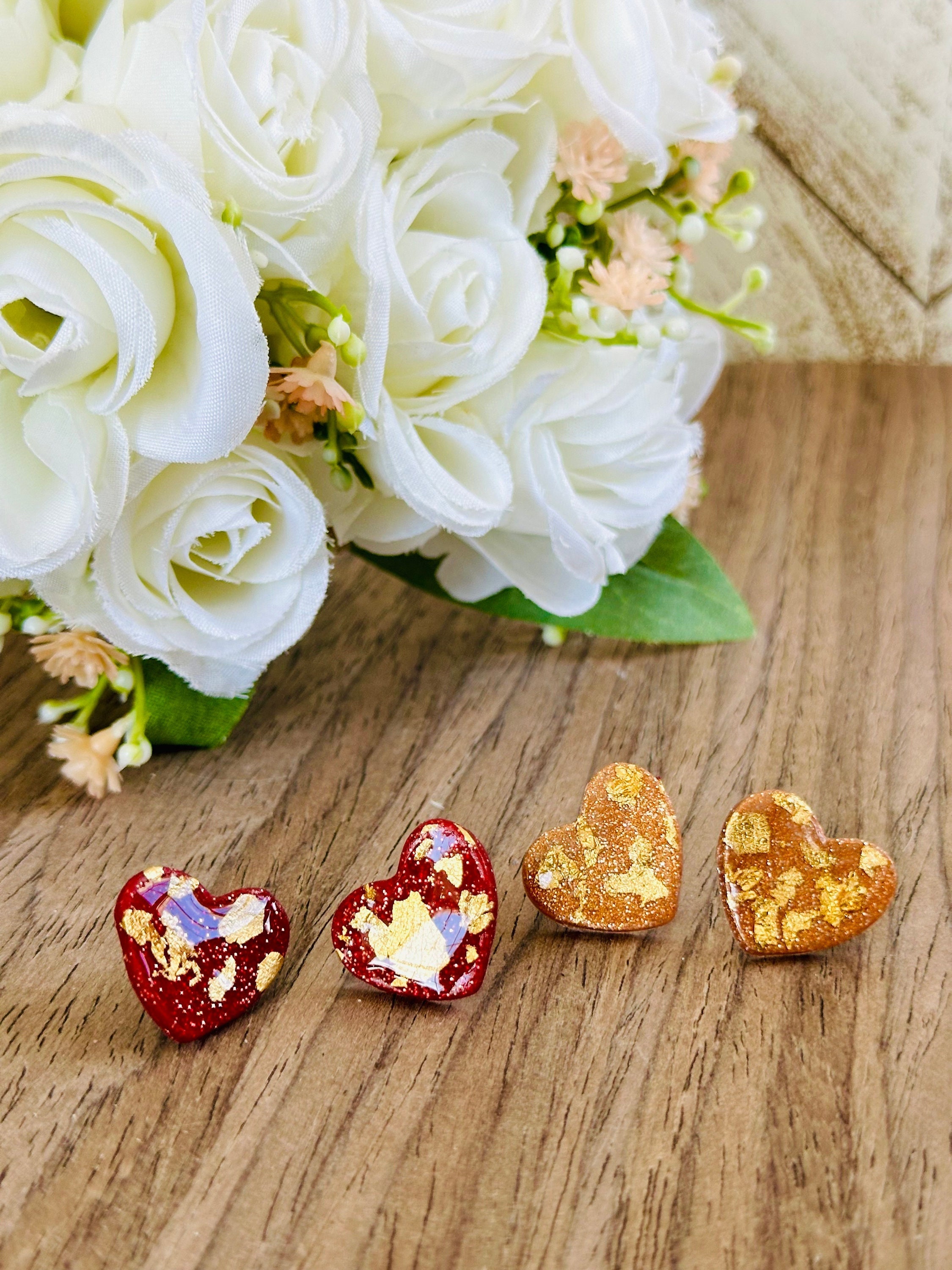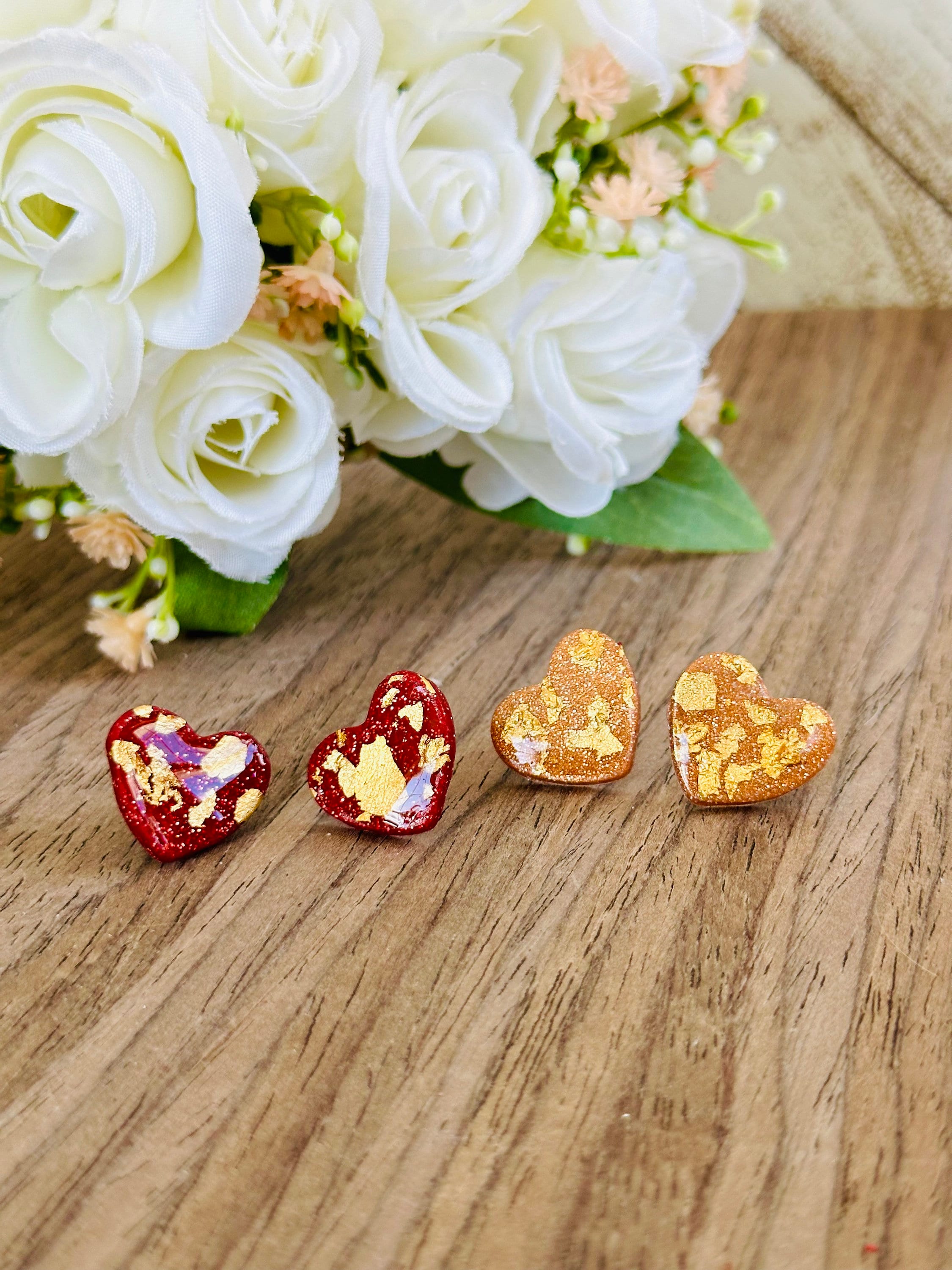 Gold Flecked Heart Stud Earrings | Resin & Polymer Clay Jewelry | Cute Statement Gift for Her | Valentine’s or Everyday Accessory