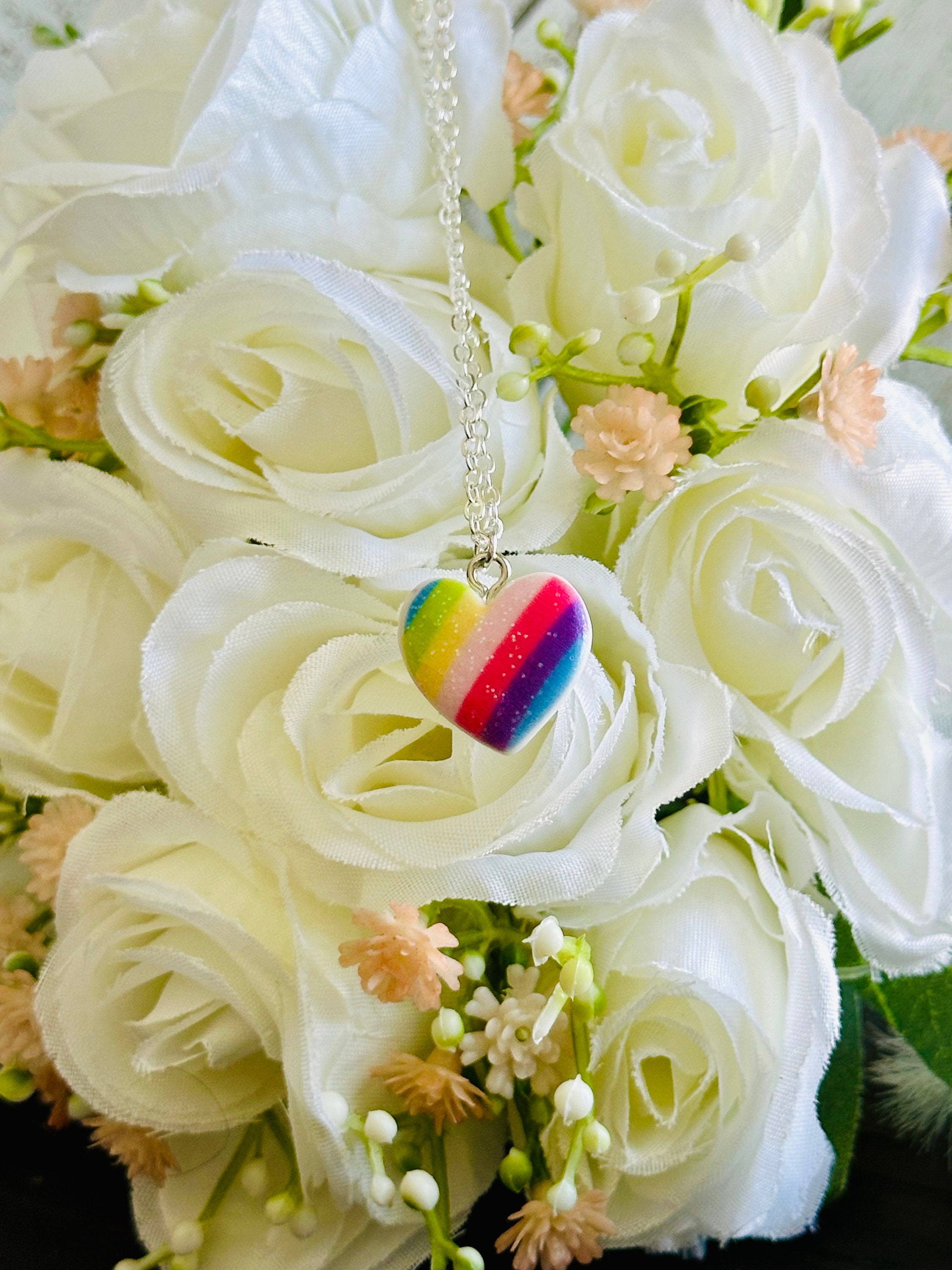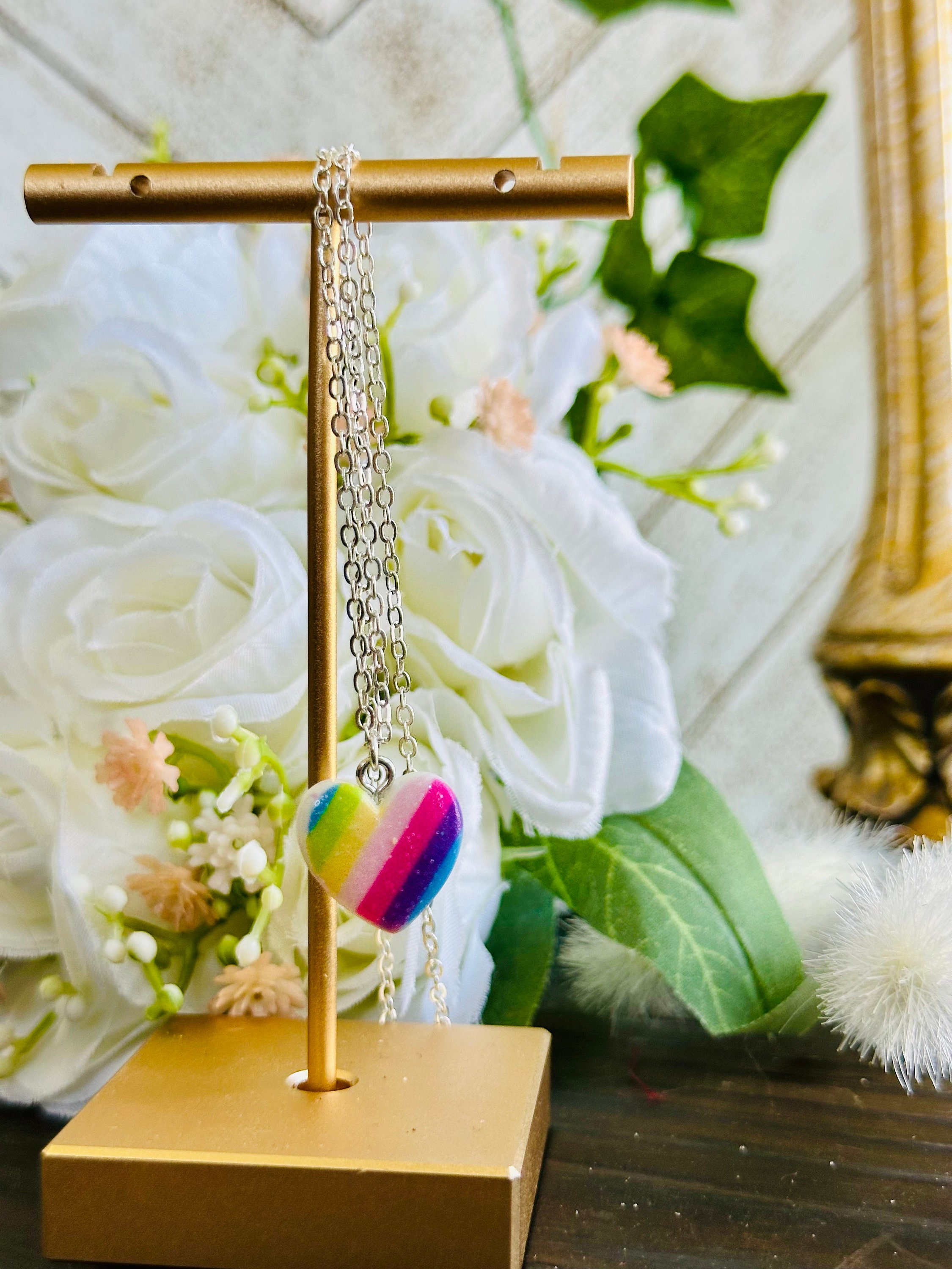 Rainbow Heart Necklace | Colorful Resin Pendant Jewelry | Cute Statement Gift for Her | Fun Pride, Summer & Festival Accessory
