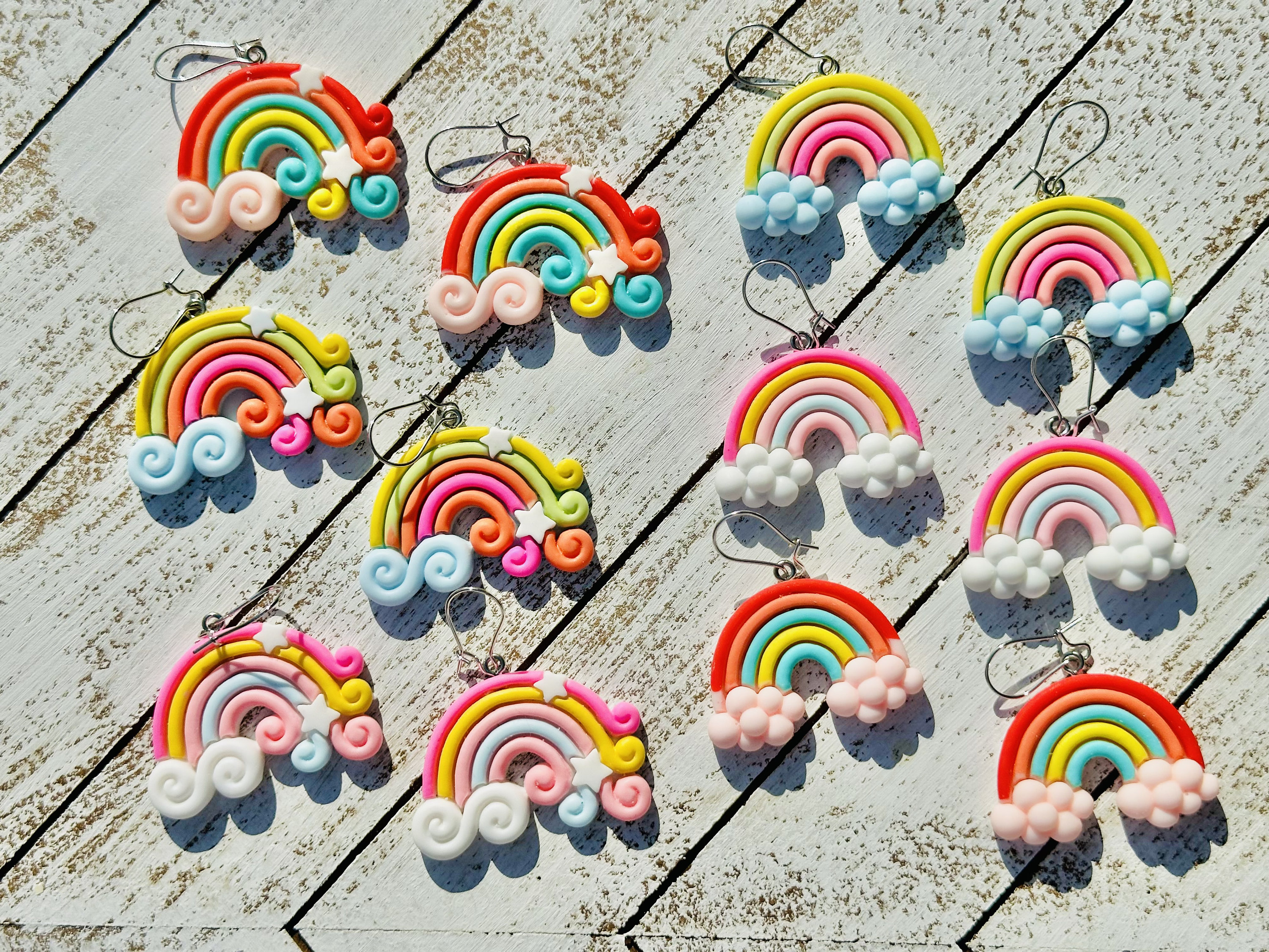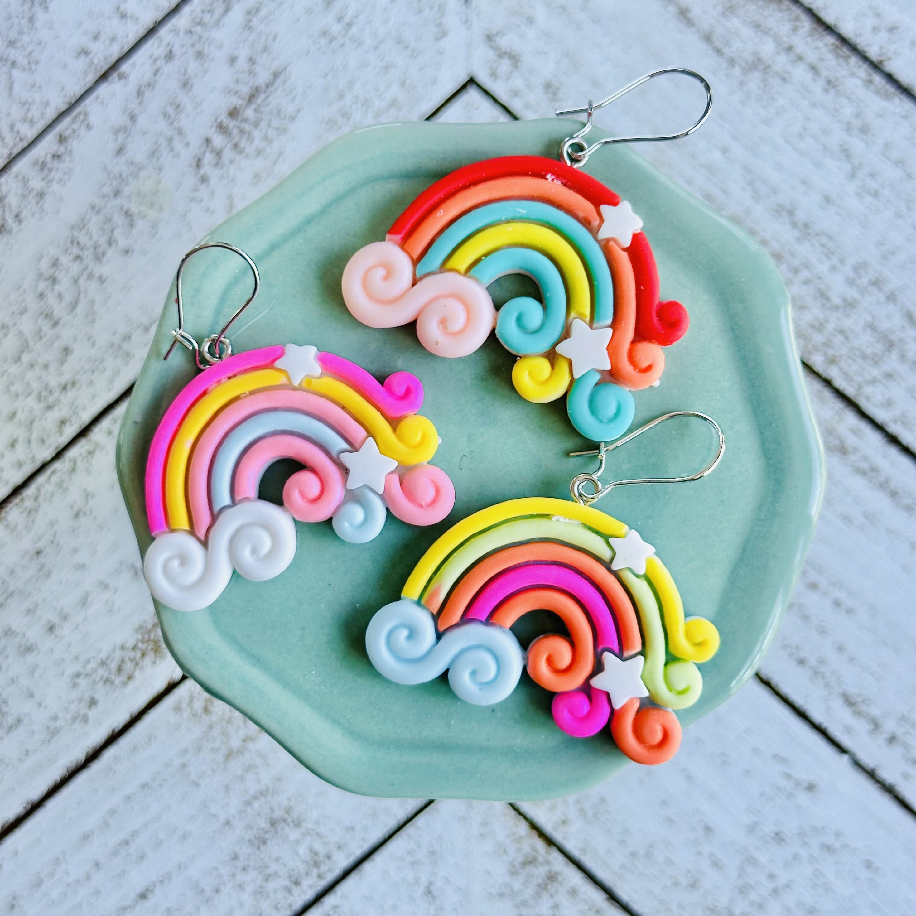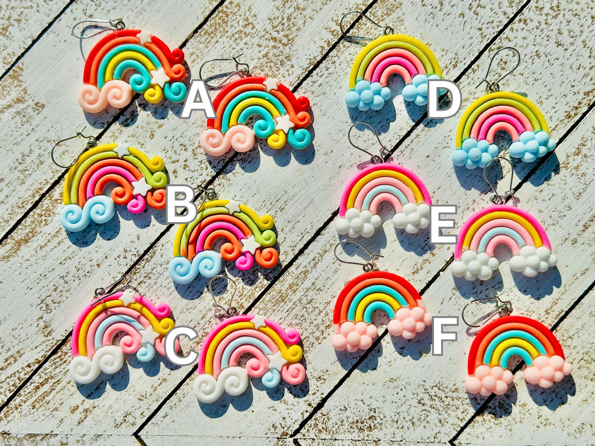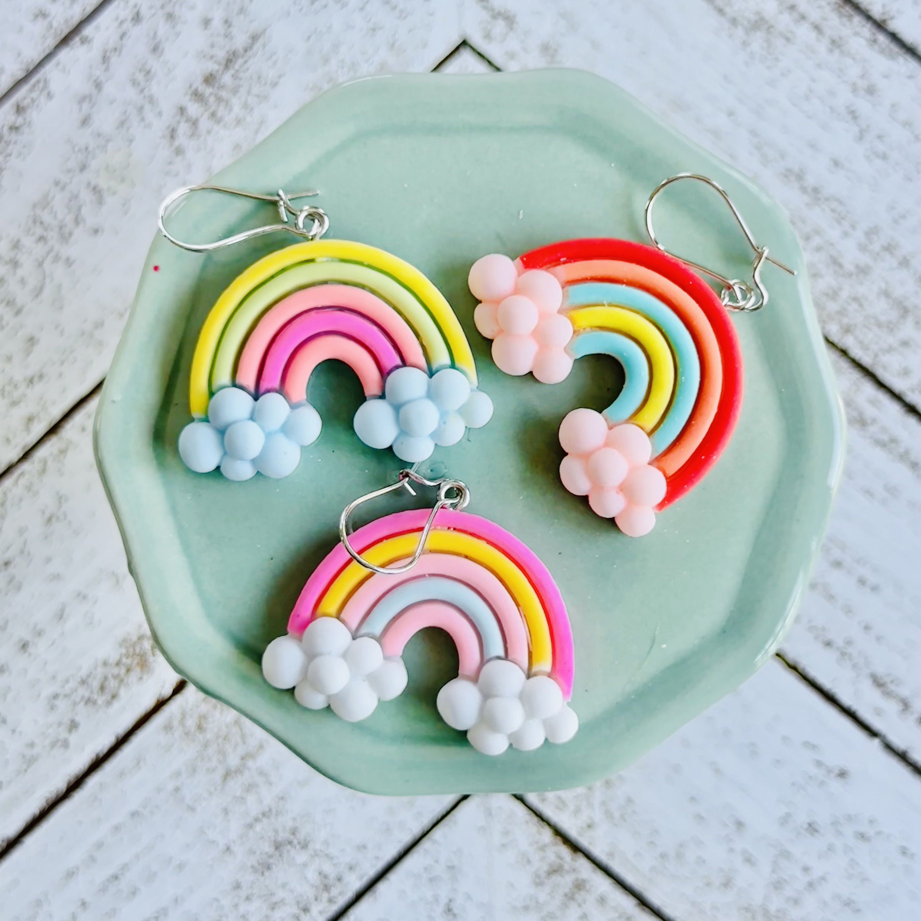 Rainbow Cloud Earrings | Colorful Dangle Jewelry | Cute Statement Gift for Her | Fun Summer & Festival Accessory