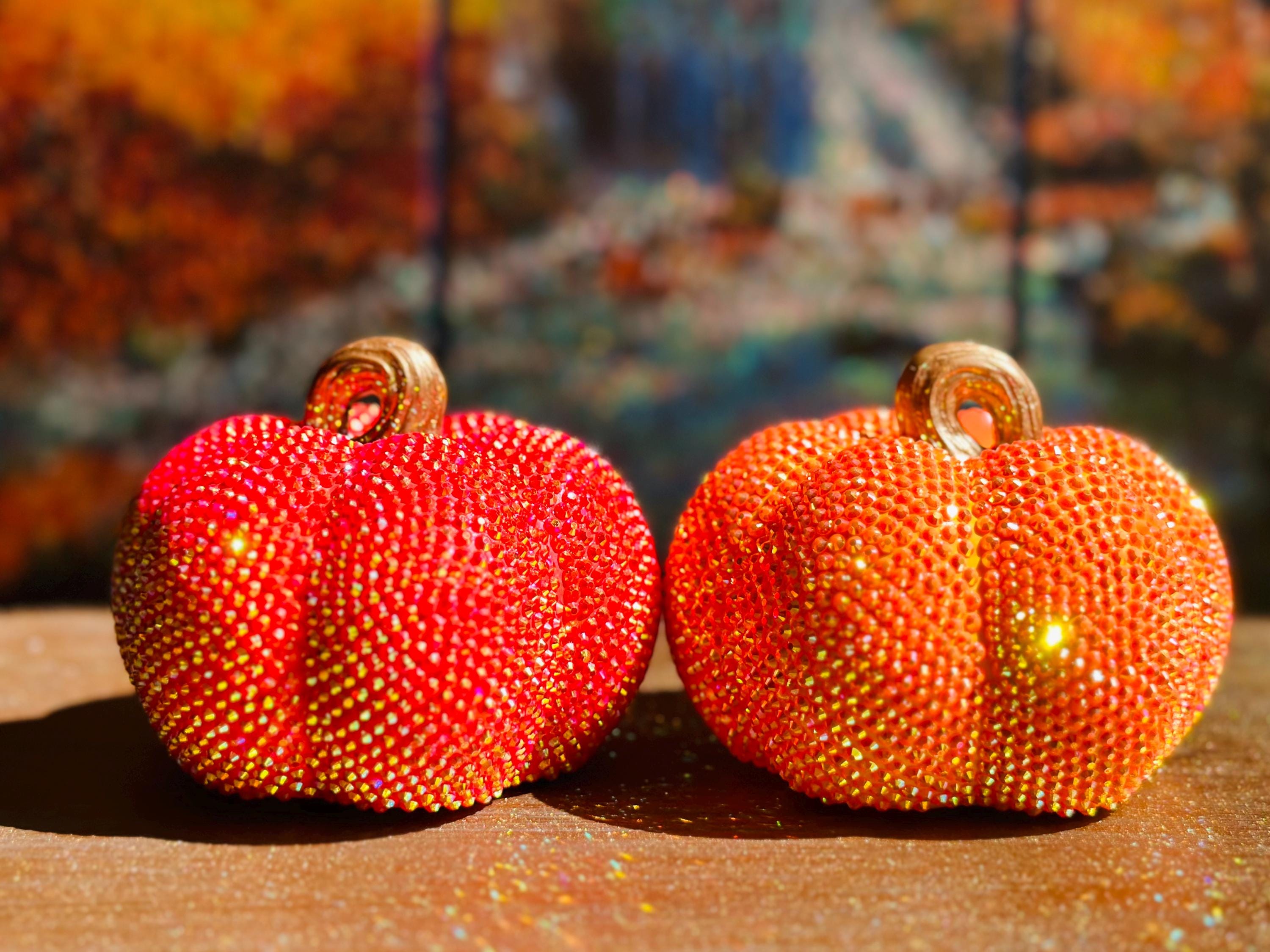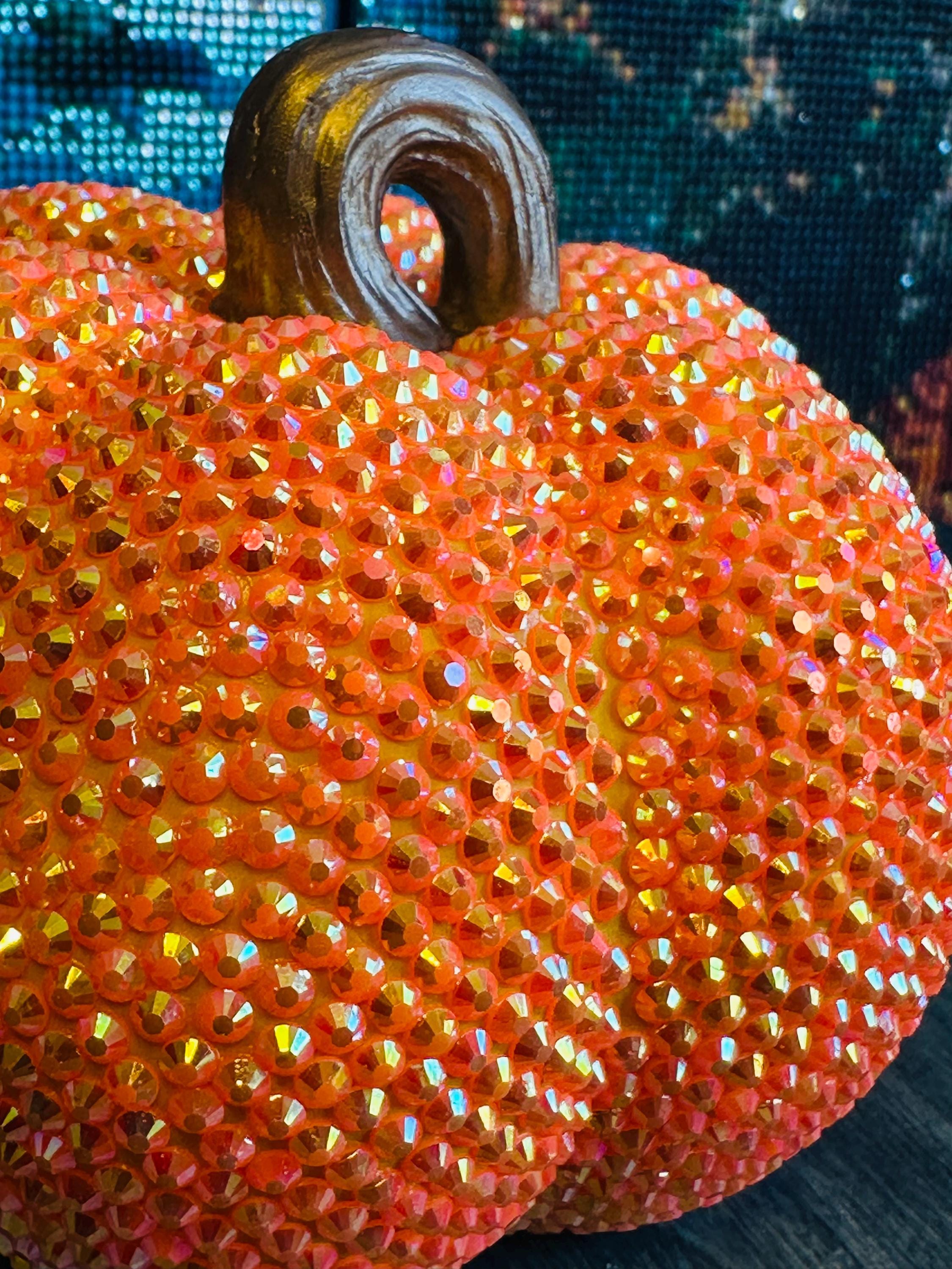 Sparkly Rhinestone Pumpkin Decoration | Glimmering Harvest Fall Decor | Glitter Halloween Centerpiece | Thanksgiving Table Accent