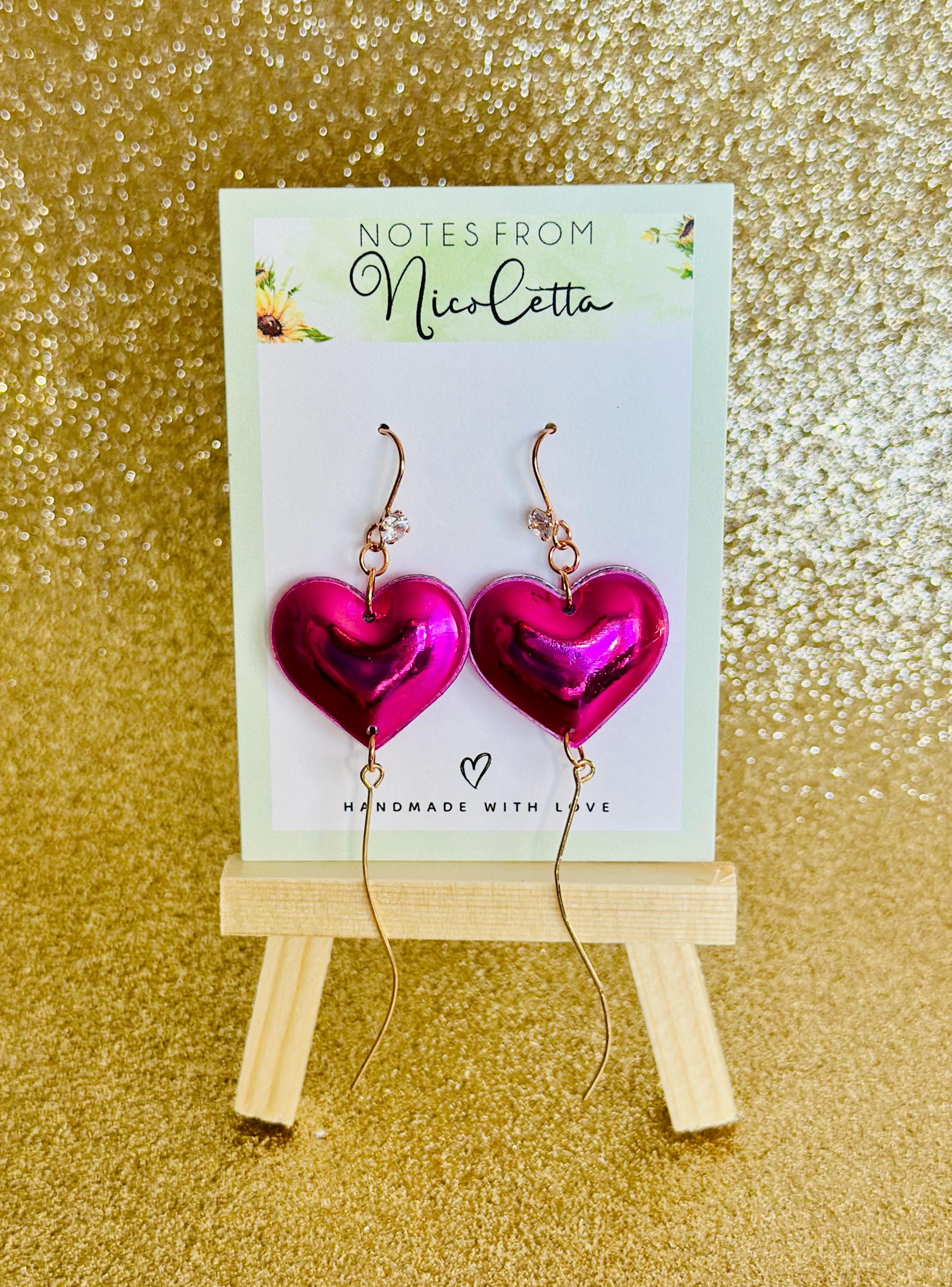 Designed to look like shiny balloon hearts, these earrings add a playful, romantic touch to any outfit. Finished with rose gold hardware, they shine beautifully while staying lightweight and comfortable. With an approximate 3-inch drop length, they make the perfect statement without feeling heavy.